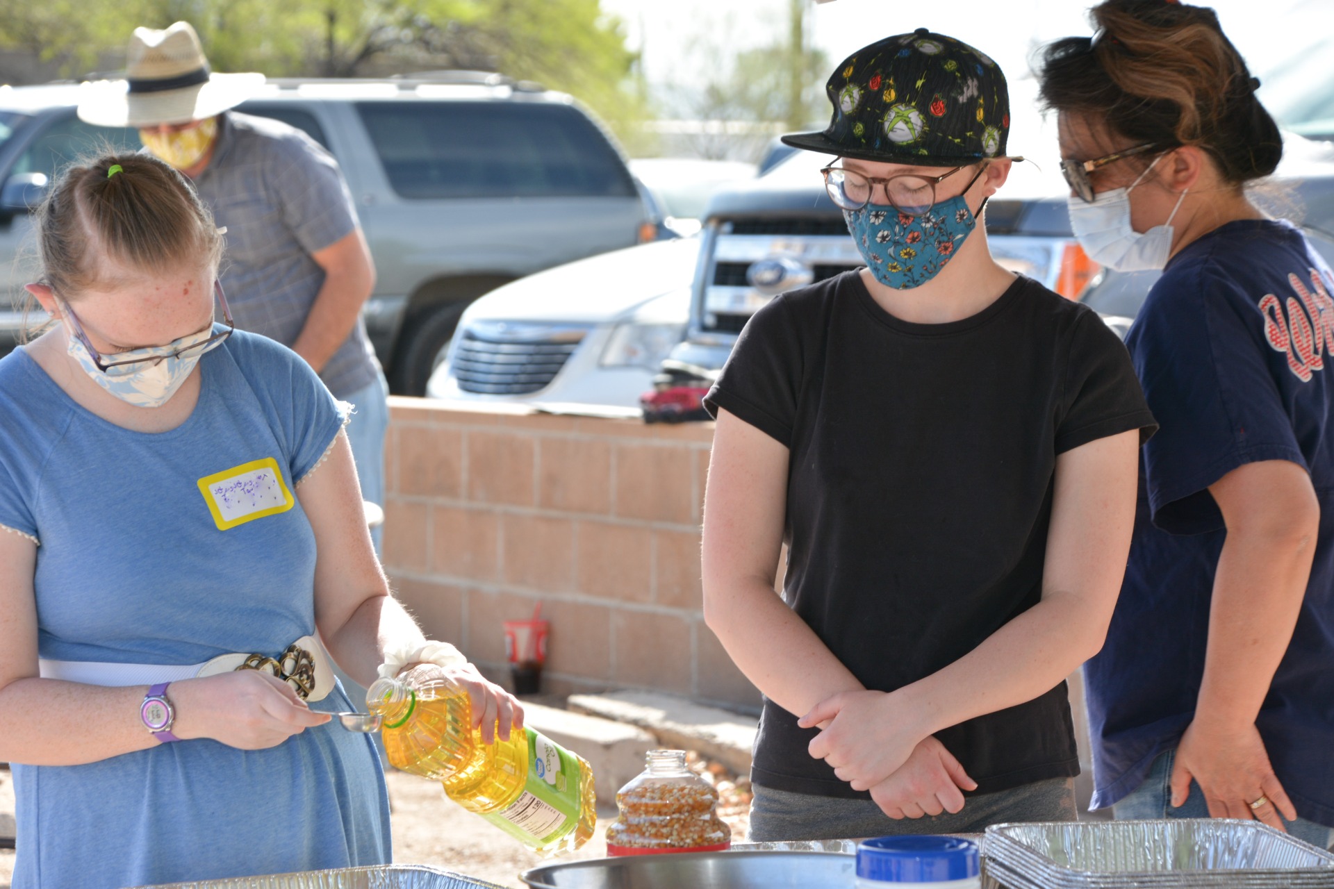 In a sturdy pot (or aluminum foil pan), add 2 Tablespoons of vegetable oil (canola oil)